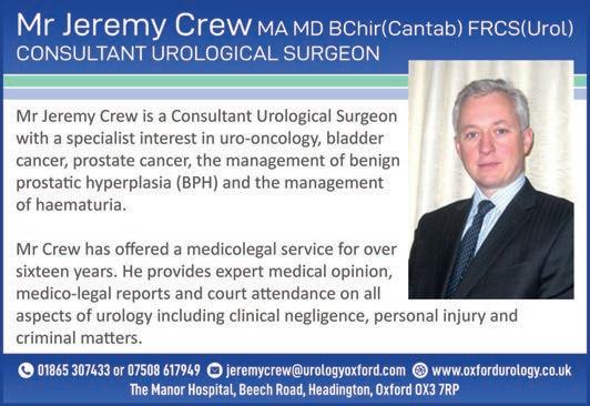 T: 01865 307433 or 07508 617949 E: jeremycrew@urologyoxford.com W: www.oxfordurology.co.uk