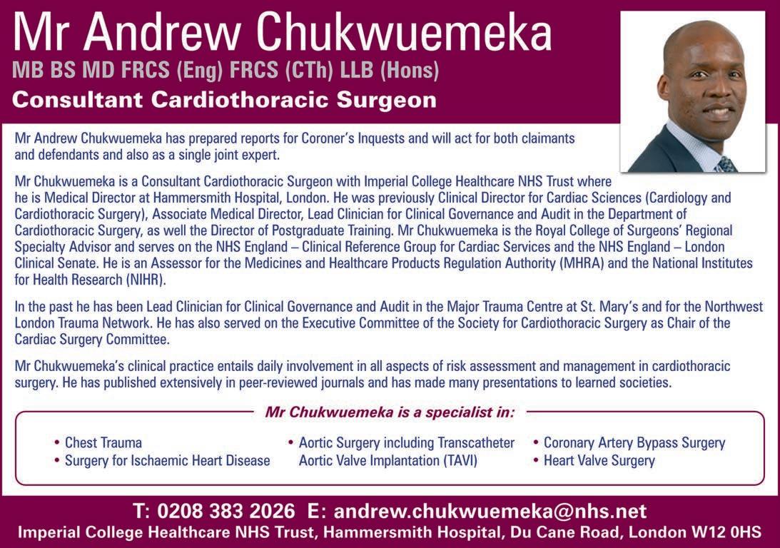 • Dr Martin Stotz is the Airway Lead at St Mary’s Hospital, London – part of the Imperial College NHS Trust – where he leads a multidisciplinary team. St Mary’s is a major trauma centre and a tertiary vascular referral centre. Dr Stotz is an experienced expert witness, providing expert opinion on most aspects of anaesthesia, the care and management of patients pre, during and postoperatively, and the clinical management of critically ill patients