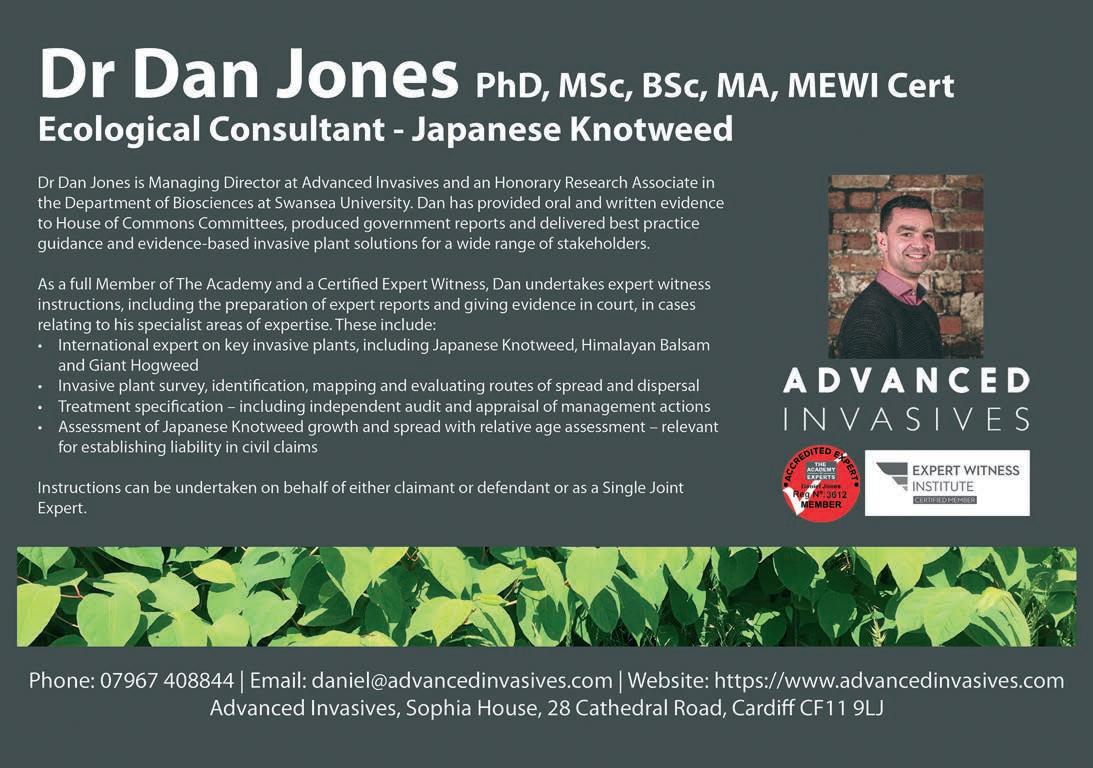 Dr Dan Jones undertakes expert witness instructions, including the preparation of expert reports and giving evidence in court, in civil claims relating to the growth and spread of all invasive plants. He can act on behalf of either claimant or defendant or as a Single Joint Expert.