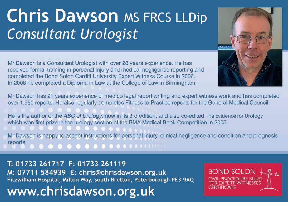 Mr Jeremy Crew has offered a medicolegal service for over sixteen years. He provides expert medical opinion, medico-legal reports and court attendance on all aspects of urology including clinical negligence, personal injury and criminal matters.