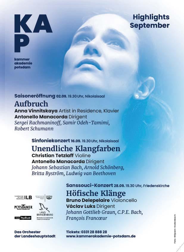 Gespielt werden Werke von Sergej Rachmaninow und Robert Schumann. Kammerakademie Potsdam. Nikolaisaal