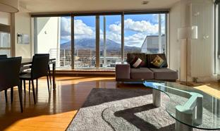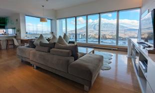This spacious 6th floor ski-in apartment offers stunning protected Mt. Yotei views, open-plan living, upgraded furnishings, and ample storage—perfect for relaxing with family after a day on the slopes.
