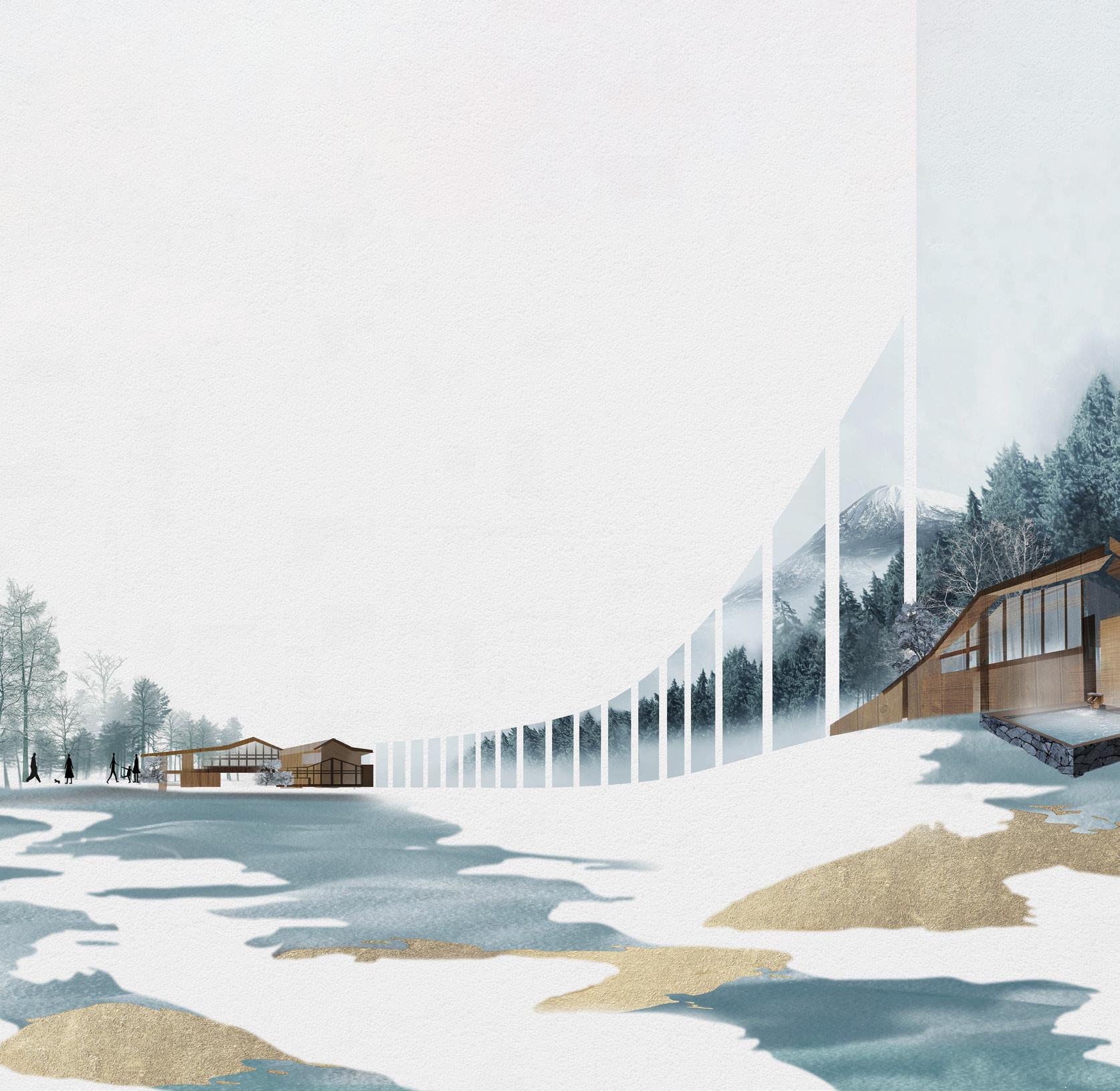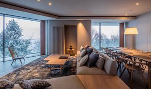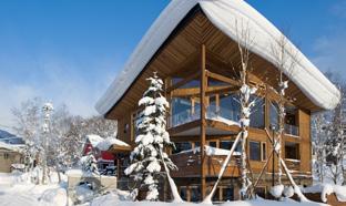 ミドルヒラフにある雪舟は波打つような屋根のラ インが特徴的な5LDKのシャレーです。全室バス ルーム付きの寝室、メディアルームが完備され、 ゆったりとした休暇をお楽しみいただけます。