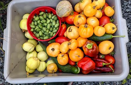 Violetta • We eat a significant amount of food fresh from the garden. I also preserve a lot of food through canning, freezing, and dehydrating. I have branched out the last few years and have learned how to use lacto fermentation to preserve vegetables. We also share the bounty with family and friends.