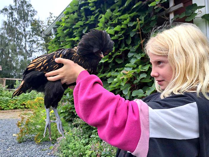 Shortly after moving here, the family put in a garden and built a chicken coop. They now have chickens and rabbits too.