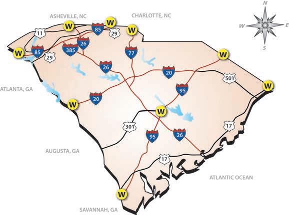 The Coast: 2.5 hours or less from most parts of the region. Charleston, Myrtle Beach & Hilton Head are notable destinations along the coast With historic sites, museums and attractions like the State Aquarium, the Carolina Opry, International African American Museum and an abundance of golf courses, the South Carolina coast offers a vast array of experiences