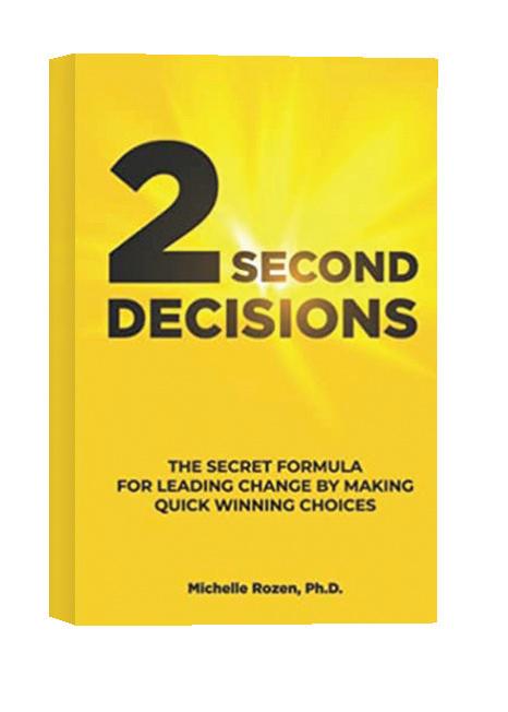 rytelling, through humor, and I love seeing my attendees go through ‘Aha’ moments that change their mindset, their choices, their careers, and their lives. I bring people to the stage and interact with them. I share my own personal story. I know that a few minutes into my talk, people realize that I have a very strong message to share, that I come from a very genuine place, and that I am a down-toearth professional they can trust and relate to. It means the world to me to be able to make that impact. Tell us about your newest book, “2 Second Decisions.”