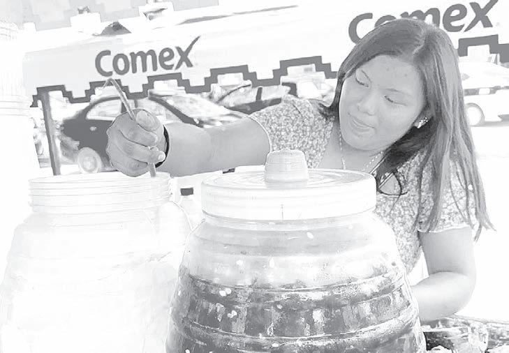 Dulce Victoria, lleva junto a su familia más de una década vendiendo agua de frutas naturales, la de coco es la que suelen consumir más los porteños. PASE A LA 3