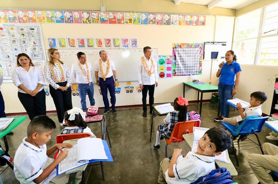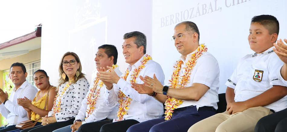 En el municipio de Berriozábal, se llevó a cabo el mejoramiento integral de espacios educativos en la Escuela Primaria “Gabriela Mistral”, con el propósito de que la comunidad estudiantil y docente cuente con instalaciones escolares dignas, modernas y seguras para transitar el proceso de enseñanza-aprendizaje. Al respecto, el gobernador Rutilio Escandón Cadenas visitó y recorrió dicho plantel, donde informó que, tras un análisis exhaustivo, se detectó una infraestructura muy deteriorada, por lo que gracias al esfuerzo interinstitucional ahora luce una escuela bonita, de calidad y a la altura de lo que requieren los 460 estudiantes, 23 docentes, directivos, así como a madres y padres de familia.