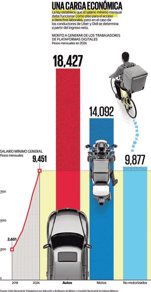 De acuerdo con Sergio Guerrero, secretario general de la Unión Nacional de Trabajadores por Aplicación y de Reparto de México, la ley establece que se debe generar un salario mínimo para ser considerado trabajador de plataformas y acceder a todos los derechos sociales laborales, pero en los hechos, no es un salario mínimo.