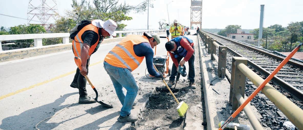 el tránsito de vehicular en esta zona con gran movimiento comercial, por lo que previo al colado, personal de Infraestructura Urbana llevó a cabo el saneamiento del terreno, la colocación de membrana plástica y la aplicación de base hidráulica con grava triturada. Por su parte, el Gobierno de México, en coordinación con la Secretaría de Infraestructura, Comunicaciones y Transportes (SICT), inició los trabajos de remodelación y reencarpetamiento del puente Coatzacoalcos I, una vía que forma parte del corredor logístico que conecta al sur-sureste del país con el resto del territorio nacional. Derivado de estas acciones, el Ayuntamiento de Coatzacoalcos informó de manera oportuna sobre los cierres programados con el objetivo de reducir afectaciones a la movilidad de la ciudadanía.