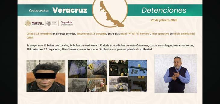 La detención de Israel “N”, alias “El Pantera”, señalado como presunto líder operativo de una célula criminal generadora de violencia en Coatzacoalcos y la zona sur de Veracruz, fue confirmada por el secretario de Seguridad y Protección Ciudadana, Omar García Harfuch, durante la conferencia matutina del gobierno federal.