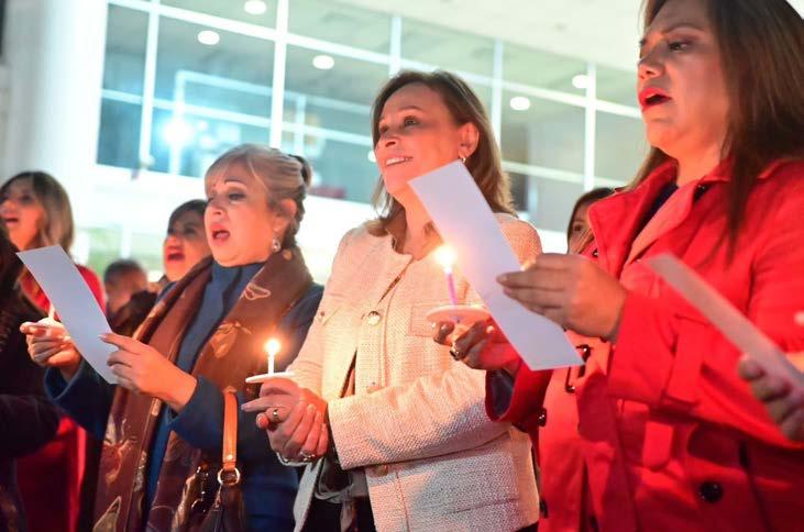 Junto a la directora del organismo, Clara Mora Juárez y sus colaboradores, congregados en la explanada, la Gobernadora hizo el conteo regresivo para apreciar la iluminación del pino y luces propias de las tradiciones.