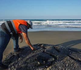 Chapopote sigue llegando a playas de Alvarado por tercer día. Pescadores reportan redes dañadas, pesca detenida y manchas de hidrocarburo en el mar. PASE A LA 2