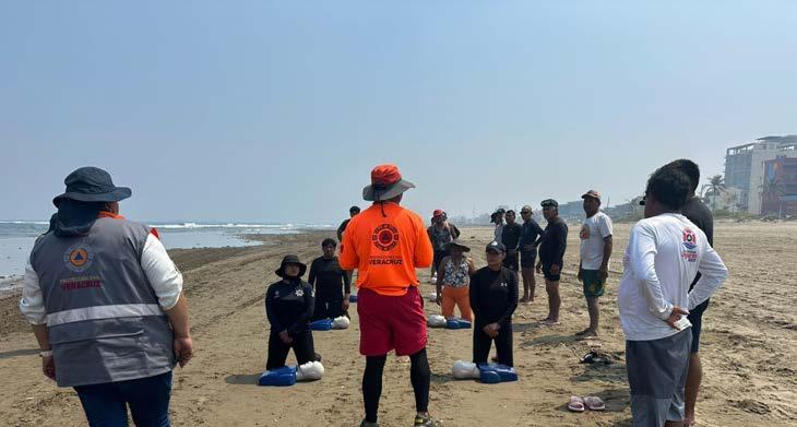 Personal de la Secretaría de Protección Civil de Veracruz impartió la capacitación, con acciones que tienen como finalidad preservar la vida y seguridad de los bañistas que llegarán a las playas de Coatzacoalcos.