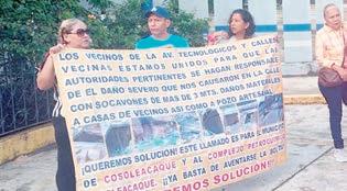 “Estamos muy mal porque no podemos caminar tranquilamente, tanto personas adultas como niños que van a la escuela y pues ahora si pedimos el apoyo ante las autoridades para reparar esos socavones, realmente están muy peligrosos para que uno camine aquí, es la avenida principal, y no nos hacen caso”, indicó una de las afectadas.