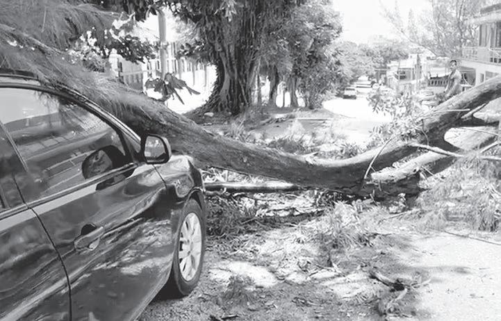 El hecho se presentó poco después de las 12:00 horas de este martes en la calle Zamora donde impactó un árbol que cayó sobre un auto compacto Versa Drive color azul.