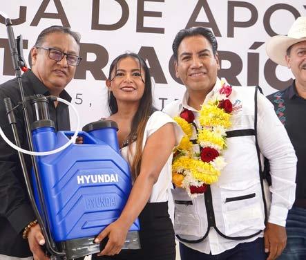 El secretario de Agricultura, Ganadería y Pesca, Marco Antonio Barba Arrocha, informó que en este municipio se entregaron 500 bombas aspersoras y árboles frutales, apoyos que fortalecerán la producción de alimentos sanos y los proyectos de reforestación.