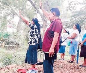 Algunas familias se organizaron para hacer oraciones en las orillas del afluente