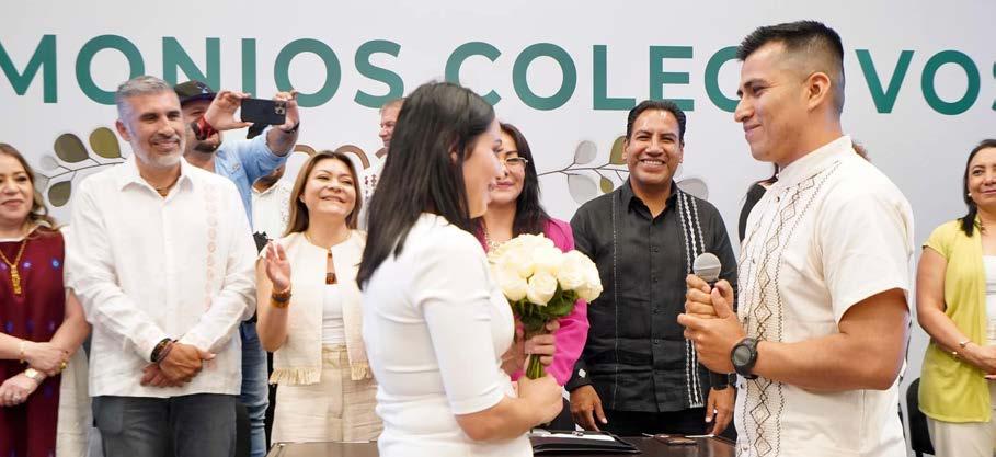 El gobernador Eduardo Ramírez Aguilar, acompañado de la señora Sofía Espinoza Abarca, asistió a la ceremonia de Matrimonios Colectivos 2025, organizada por el DIF Chiapas, donde destacó que formalizar legalmente una unión brinda certeza jurídica a las parejas, por ello felicitó a quienes tomaron esta decisión y les deseó éxito en esta nueva etapa.
