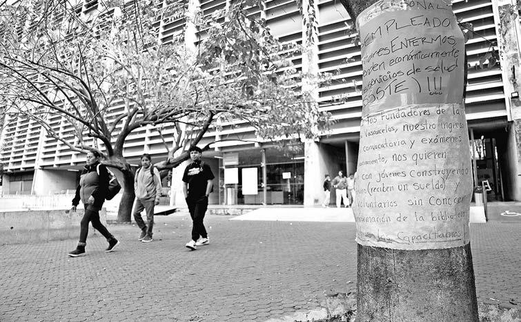 Ella tiene un laudo a su favor de 2024 para ser basificada, su número de expediente es el 4347/18, y aun así la despidieron. Como ella hay otros compañeros con laudos ganados pero despedidos. “Estoy actuando conforme a la ley. Ellos no. Deben basificarnos, incurren en una injusticia”, afirma. David, Mirna y Nora coinciden en un hecho que agravaría la situación laboral de la Biblioteca. Dicen tener datos de que sus tareas las están realizando becarios del programa Jóvenes construyendo el futuro. “Están echando mano de ese programa para cubrir áreas que nosotros hacíamos con experiencia, con conocimiento. Nosotros capacitamos a los que están ahorita”, dice Mirna.
