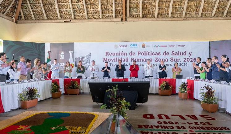 El gobernador Eduardo Ramírez Aguilar inauguró la Reunión de Políticas de Salud y Movilidad Humana Zona Sur, 2026, realizada en el municipio de Tapachula, donde subrayó que el gobierno de la Nueva ERA ha asumido como prioridad fortalecer la salud y el bienestar, así como garantizar el respeto a los derechos de las personas en contexto de movilidad que transitan por la frontera sur. Acompañado del director general de Salud Pública de la Secretaría de Salud del Gobierno de México, Daniel Aceves Villagrán; del representante en México de la OMS/OPS, José Moya Medina, entre otras autoridades federales, estatales, municipales y representantes