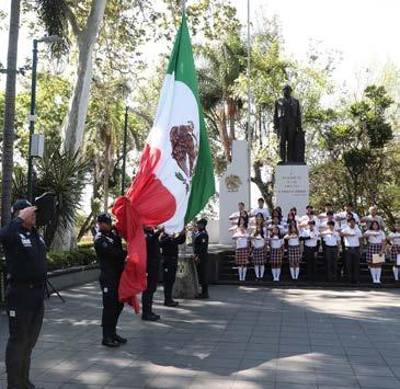 La ceremonia estuvo a cargo de la Coordinación de Promoción de los Valores Cívicos y Culturales de la Secretaría de Gobierno, con el izamiento de la Bandera Nacional y la participación del Telebachillerato Colonia Higuera.