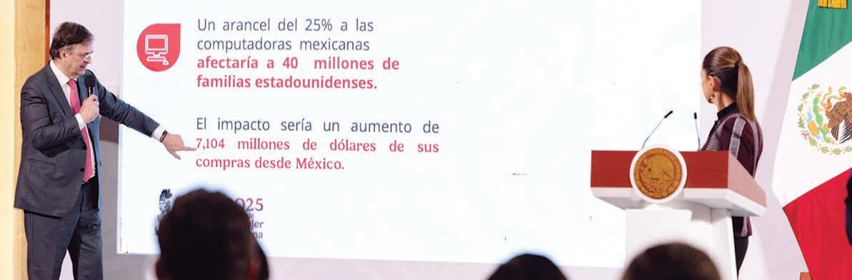 La Presidenta Claudia Sheinbaum Pardo resaltó que, ante la posibilidad de que Estados Unidos implemente el 25 por ciento en aranceles, el Gobierno de México se encuentra preparado. Además de que esta medida tendría impacto en la economía de millones de familias estadounidenses, ya que México es el principal exportador de productos finales como automóviles, computadoras, televisores y refrigeradores.