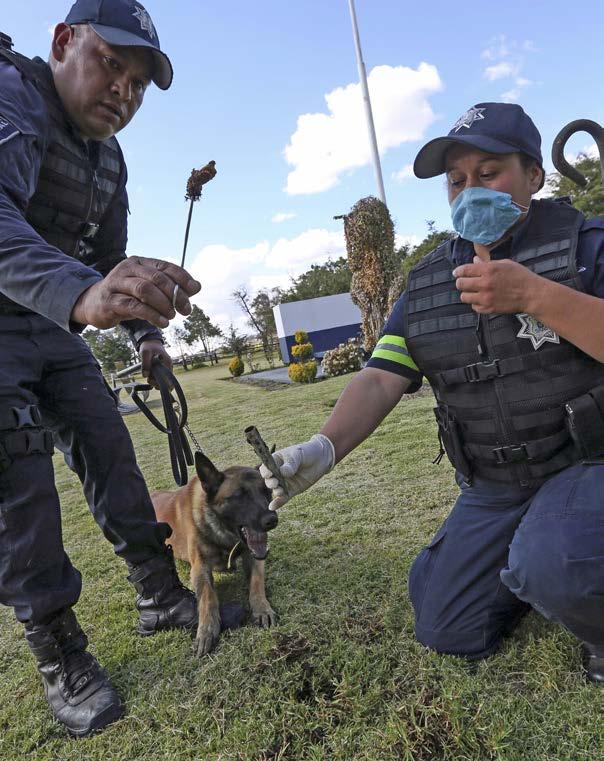 cos. “Nos mantenemos capacitando a los perros y también a los policías, comenzamos con los canes que ya están en edad para que desempeñen actividades y se especialicen en localizar drogas, personas, cadáveres y explosivos”, precisó. Cada uno de los cuatro agrupamientos cuenta con un entrenador, que distingue las diferentes características del cachorro y lo asigna una célula en específico.