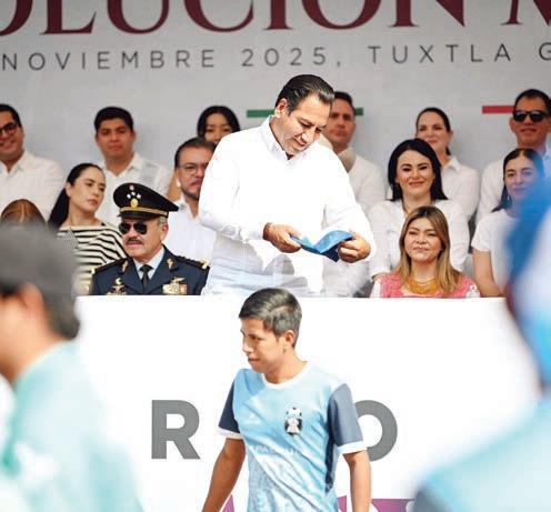 tía y el trabajo conjuntos son el motor que impulsa nuestra historia; y que la paz se construye todos los días con voluntad y responsabilidad compartida. Sigamos pues adelante, con la fuerza de nuestros ideales, la unidad de nuestro pueblo y la convicción de que Chiapas seguirá siendo tierra de paz, de trabajo y de desarrollo”, sostuvo. El fiscal general del Estado, Jorge Luis Llaven Abarca, subrayó que esta fecha marcó un antes y un después para México, al ser el momento en que el pueblo alzó la voz por justicia y dignidad, y honra también a quienes dieron su vida por la patria. Consideró que el espíritu de la Revolución permanece vivo en el liderazgo de la presidenta Claudia Sheinbaum y del gobernador Eduardo Ramírez,