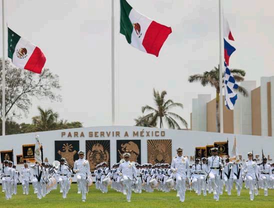 Con profundo respeto, la Jefa del Ejecutivo pasó lista de honor a los cadetes de la Heroica Escuela Naval Militar y del Heroico Colegio Militar, seguida del toque de Silencio interpretado por la banda de guerra y una salva de fusilería. Como parte del acto, entregó el espadín a los estudiantes, símbolo del principio del don de mando que habrán de cultivar para convertirse en auténticos líderes al servicio de la Armada de México.