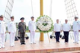 Se dio paso al toque de silencio de la bandadeguerrayunasalvadefusilería.Las autoridades navales, militares y municipales efectuaron una guardia de honor en el Asta Bandera con un minuto de silencio para honrar a los héroes de la patria.