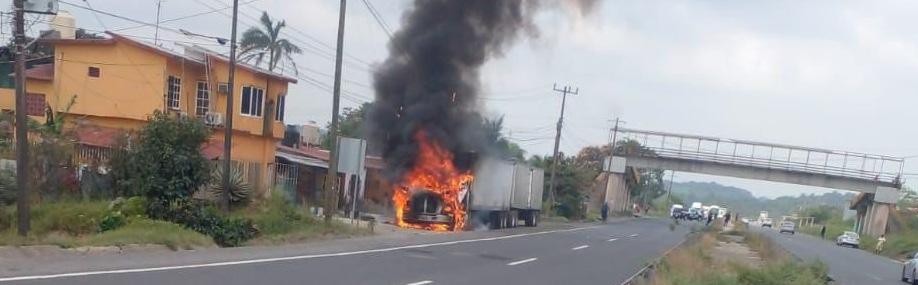 En el sur, un tráiler fue incendiado en el ejido 5 de Mayo, en Coatzacoalcos, durante las primeras horas de este domingo.