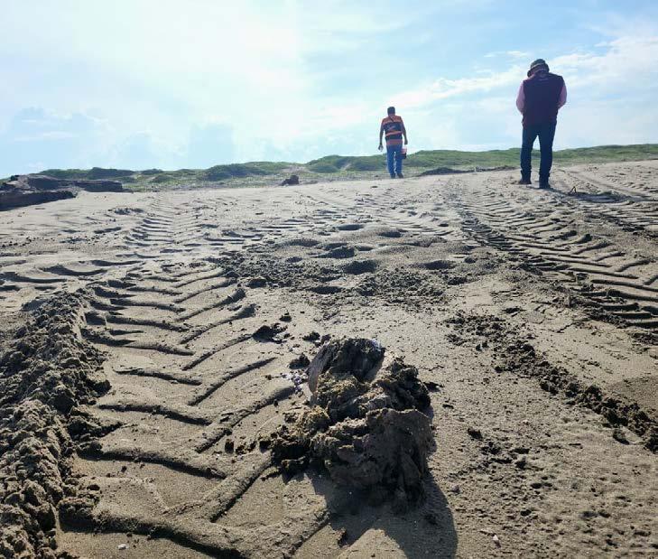 Personal de la Jurisdicción Sanitaria XI realizó una inspección en los sitios donde fueron enterrados los casi 20 animales que recalaron muertos en la playa al poniente de Coatzacoalcos.