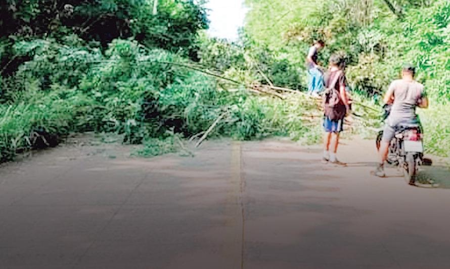 Con ramas de árboles, el camino que conduce al municipio serrano fue incomunicado por lo que desde