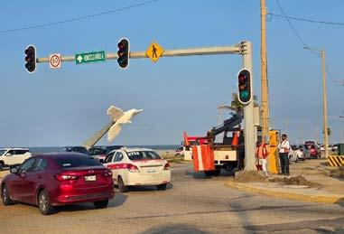 Personal de Semáforos de México (Semex) y de Alumbrado Público del Ayuntamiento de Coatzacoalcos, pusieron en operación los semáforos del crucero del malecón y avenida Las Palmas. PASE A LA 3