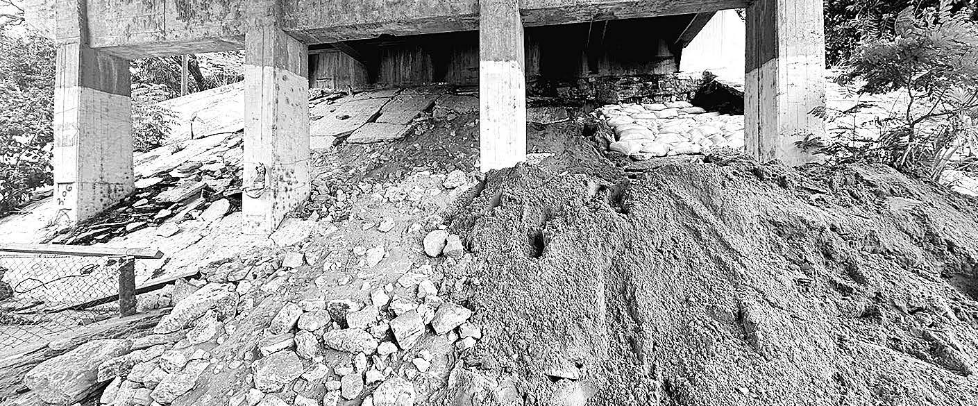 Hace unos meses se generó un socavón en el puente y la arena debajo del puente se vino abajo consecuencia de las lluvias.