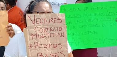 El personal de vectores expuso que algunos llevan más de una década laborando en la lucha contra el dengue, zika y chikungunya, por lo que consideraron que es momento de contar con una garantía de trabajo para sus familias.