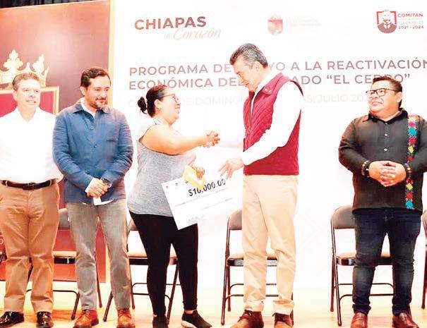 rá con instalaciones modernas, dignas y seguras a fin de resguardar la materia prima. “Venimos a entregar la primera parte de estos apoyos en reconocimiento a la gente responsable y que día con día trabaja ofreciendo los mejores productos y servicios a la comunidad, como las y los locatarios de este emblemático Mercado “El Cedro”, quienes han hecho posible la comercialización y el movimiento económico para que no falte nada en esta bella ciudad”, expresó. En ese marco, destacó el respaldo del presidente Andrés Manuel López Obrador por el apoyo que brinda a Chiapas mediante los programas sociales, así como al sumarse a la rehabilitación y modernización de hospitales, escuelas, espacios públicos, calles, carreteras, entre otras acciones que responden a necesidades prioritarias del pueblo.