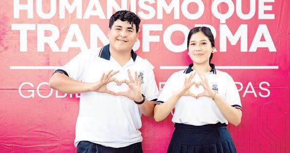 desarrollo académico y motiva a la juventud a seguir esforzándose para alcanzar sus metas. En representación del alumnado, Estrella Lechuga Tinajero, del Cobach Plantel 10, reconoció las acciones del gobierno estatal a favor de la educación y la seguridad, comprometiéndose a redoblar esfuerzos en su formación académica para contribuir al progreso de Chiapas. “Gracias, gobernador, por ser el ejemplo de que un cobachense egresado de estas aulas puede volar muy alto, como usted lo ha hecho”, afirmó.