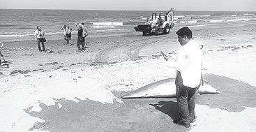 Coatzacoalcos, Ver.- Un delfín sin vida apareció en la playa de Coatzacoalcos, al cetáceo le cortaron la aleta caudal, es decir de la cola, lo que habría provocado su muerte.