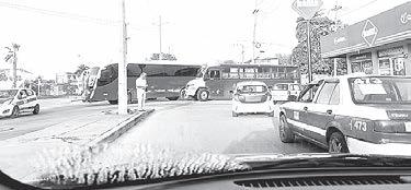 El tercer choque se registró en la calle Zaragoza casi esquina con Transístmica, el autobús de la ruta central Punta Caracol intentó rebasar por la izquierda a una unidad AU.