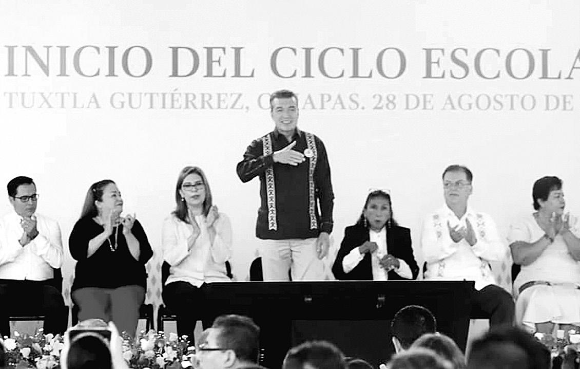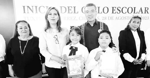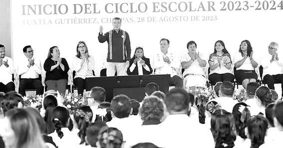 En el ‘Inicio del Ciclo 2023-2024’, Rutilio Escandón Cadenas gobernador de Chiapas, señaló que “las niñas y niños pronto tomarán la estafeta y nos representarán en todos los ámbitos. Estamos seguros que serán grandes profesionistas que pondrán en alto el nombre del estado y de su comunidad”.. PASE A LA 10