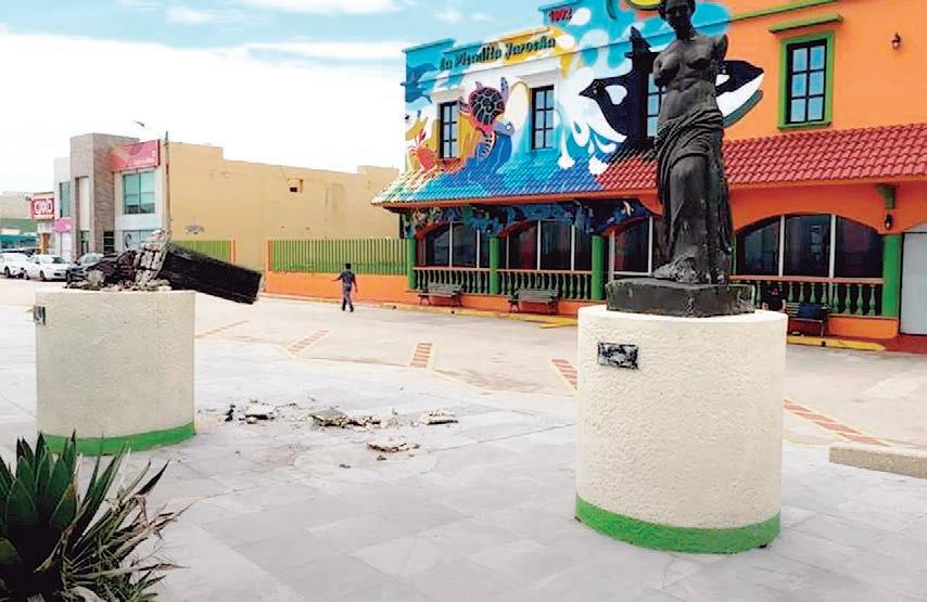 Consecuencia del material con el que fueron construidas y los nortes, una escultura más de la Plaza de las Culturas se vino abajo, por lo que artistas plásticos consideran que se le debe poner especial atención a este espacio.