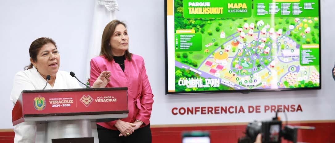 La gobernadora Rocío Nahle García encabezó la conferencia en la que se presentó oficialmente la edición 2026 de Cumbre Tajín, bajo el lema Tapaxawan, Alegría que une culturas, del 20 al 22 de marzo en el Parque