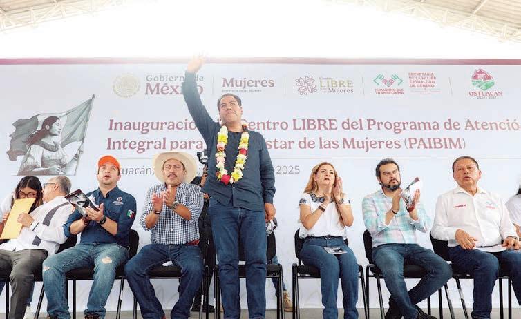 el mantenimiento del camino Estación Juárez-Santa MarthaOstuacán y otras obras prioritarias. Atestiguó los servicios de los módulos de salud y las aulas móviles de capacitación, además de inaugurar el Centro LIBRE del Programa Integral para la Atención de las Mujeres (Paibim). Señaló que sumará esfuerzos con el Ayuntamiento para consolidar el proyecto del mercado municipal. En materia educativa, inauguró espacios en la Telesecundaria 911, anunció infraestructura en el Jardín de Niñas y Niños Miguel Hidalgo y Costilla y entregó becas de alfabetización, precisando que el siguiente paso será apoyar a quienes deseen continuar sus estudios.