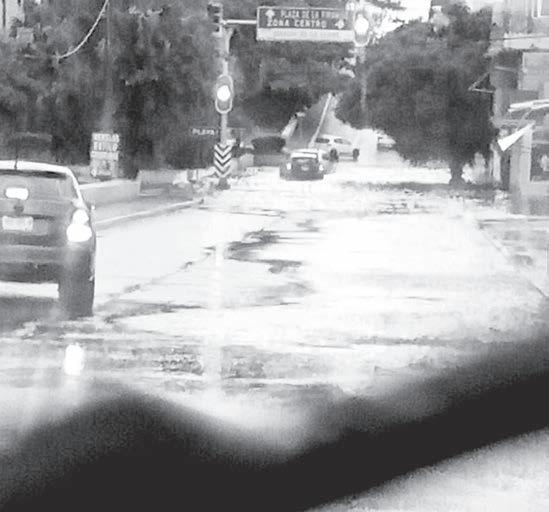 En el malecón desde la colonia Playa Sol hasta el centro, el agua se acumuló debido a su descenso de las colonias en la parte alta, dejando autos varados.