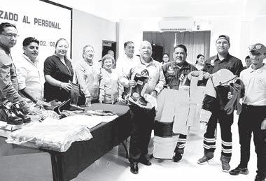 Nanchital, Ver.- Con la única finalidad de seguir reforzando las áreas operativas al servicio de la ciudadanía, la mañana de este miércoles autoridades municipales y sindicales, encabezadas por la Alcaldesa Esmeralda Mora Zamudio, llevaron a cabo la entrega de más equipo y uniformes al personal sindicalizado. En su mensaje, la edil reconoció la dedicación y esfuerzo diario de los empleados, por lo que en agradecimiento y cumpliendo con la dirigencia sindical, se realizó está entrega, que consiste en uniformes y equipos de seguridad, que consta de gafas, mascarillas, impermeables, botas de hule, guantes, chalecos salvavidas y trajes estructurales de bomberos. Todo lo anterior, ayudará a fortalecer los departamentos de Alumbrado Público, Manteamiento Civil, Ecología, Limpia Pública, COMUDE, Canales y Protección Civil Municipal.