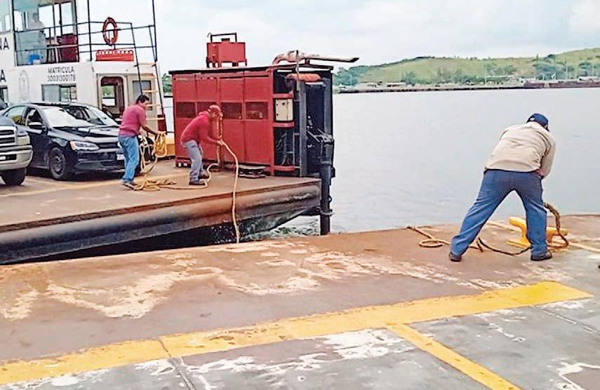 Fueron más de 10 minutos que tardó en atracar el Grijalva luego de haber salido de Villa Allende, por lo que fueron trabajadores del sistema de transbordadores quienes se las ingeniaron para que tanto pasajeros como autos y motocicletas y hasta triciclos pudieran descender.