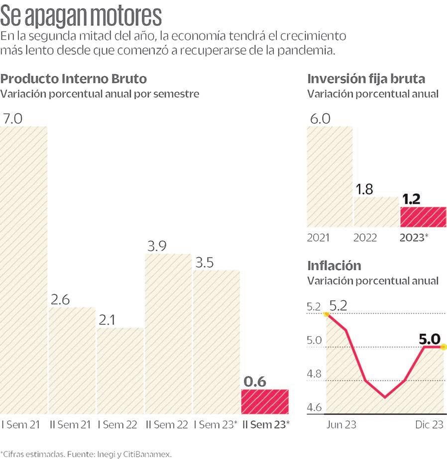 Adiferencia del sorpresivo crecimiento que tuvo en la primera mitad de 2023, la economía mexicana va a perder impulso en lo que resta del año debido a que las altas tasas de interés tendrán efectos más evidentes en el consumo y la inversión, aunado a la incertidumbre por una eventual recesión en Estados Unidos.